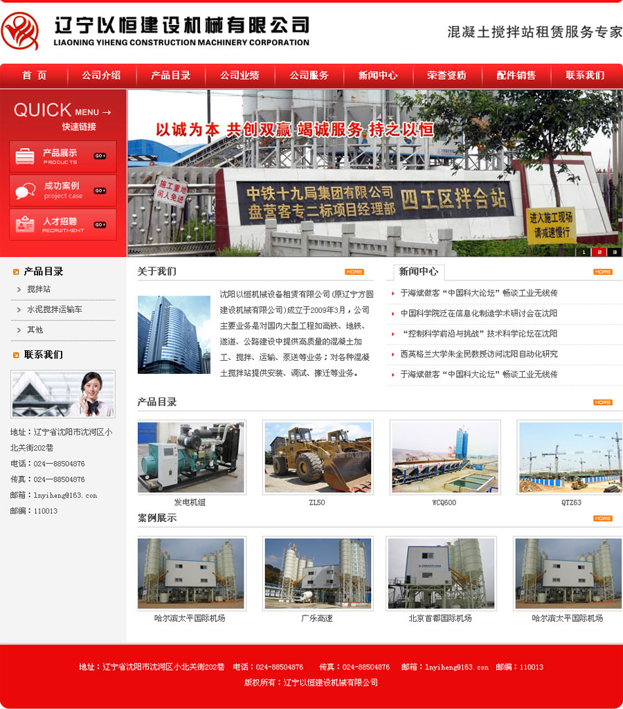 沈阳以恒机械设备租赁有限公司(原辽宁方圆建设机械有限公司)成立于2009年3月,公司主要业务是对国内大型工程如高铁、地铁、遂道、公路建设中提供高质量的混凝土加工、搅拌、运输、泵送等业务;对各种混凝土搅拌站提供安装、调试、搬迁等业务。