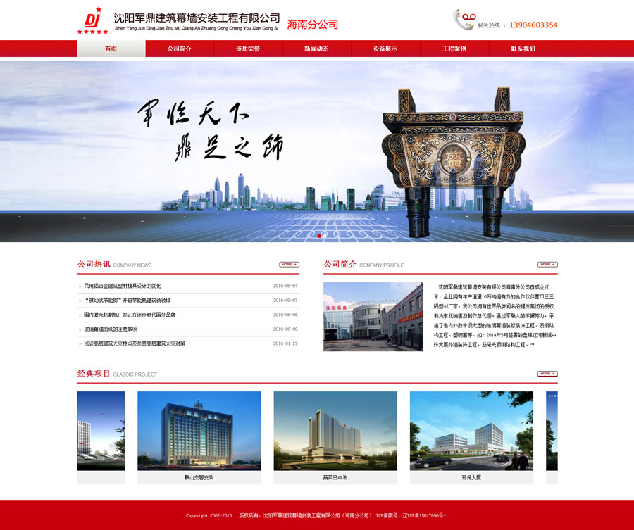 沈阳军鼎建筑幕墙安装有根公司海南分公司自成立以米,企业拥有年产值量10万吨强有力的合作伙伴营口三三铝型材厂家,我公司拥有世界品牌闻名的耀皮集闭的授权书为东北销售及制作总代理。